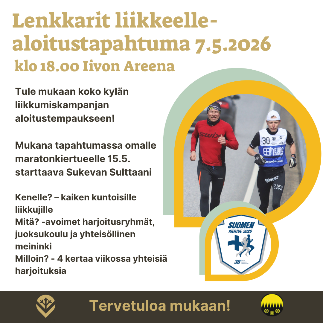 Tule mukaan koko kylän liikkumiskampanjan aloitustempaukseen. Mukana tapahtumassa omalle maraton-kiertueelle starttaava Sukevan Sulttaani.