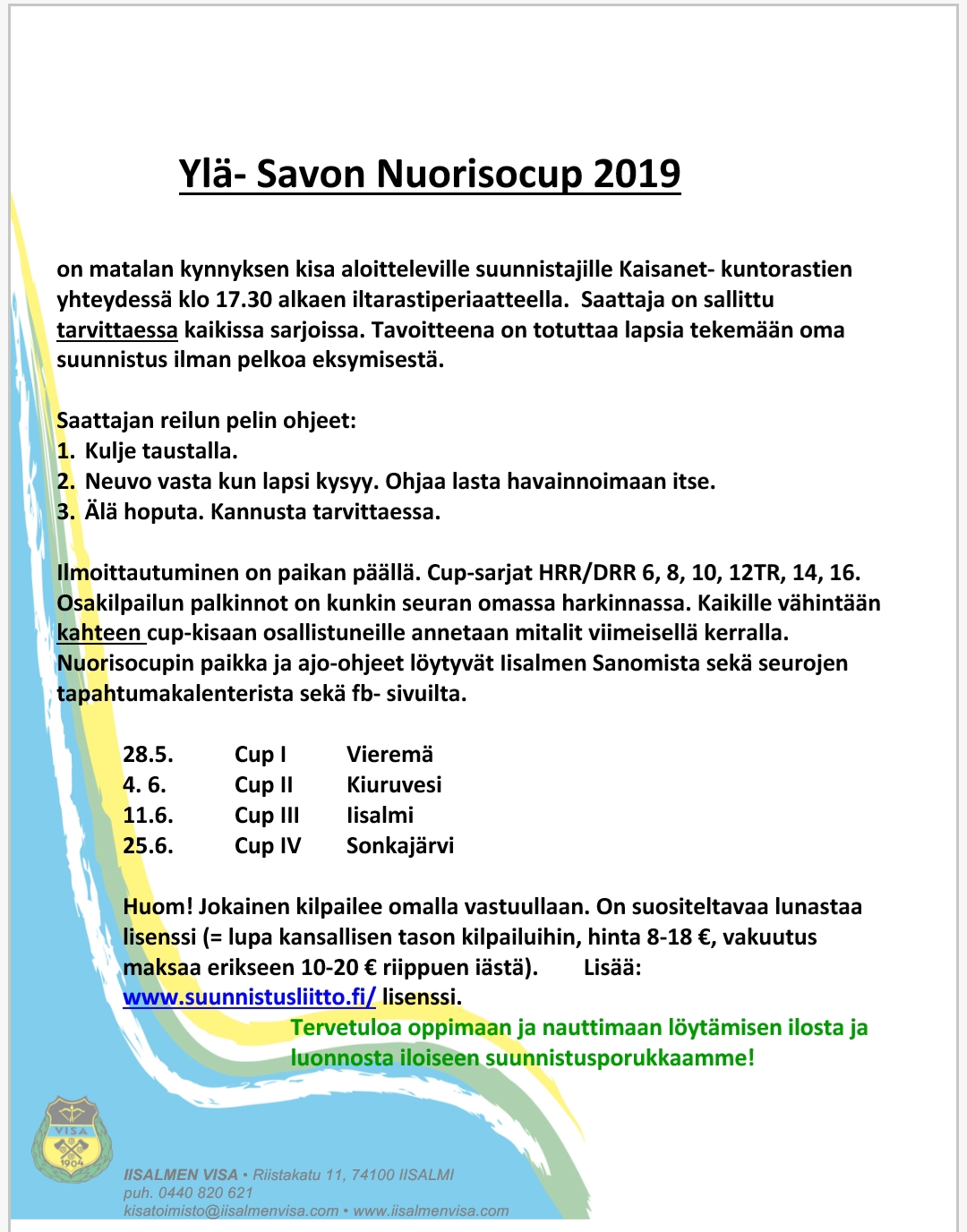Kaisanet kuntorastit sekä Ylä-Savon nuorisocupin avauskilpailu Vieremän Pöytämäen maastossa. Kuntorasteilla radat A, B sekä C.